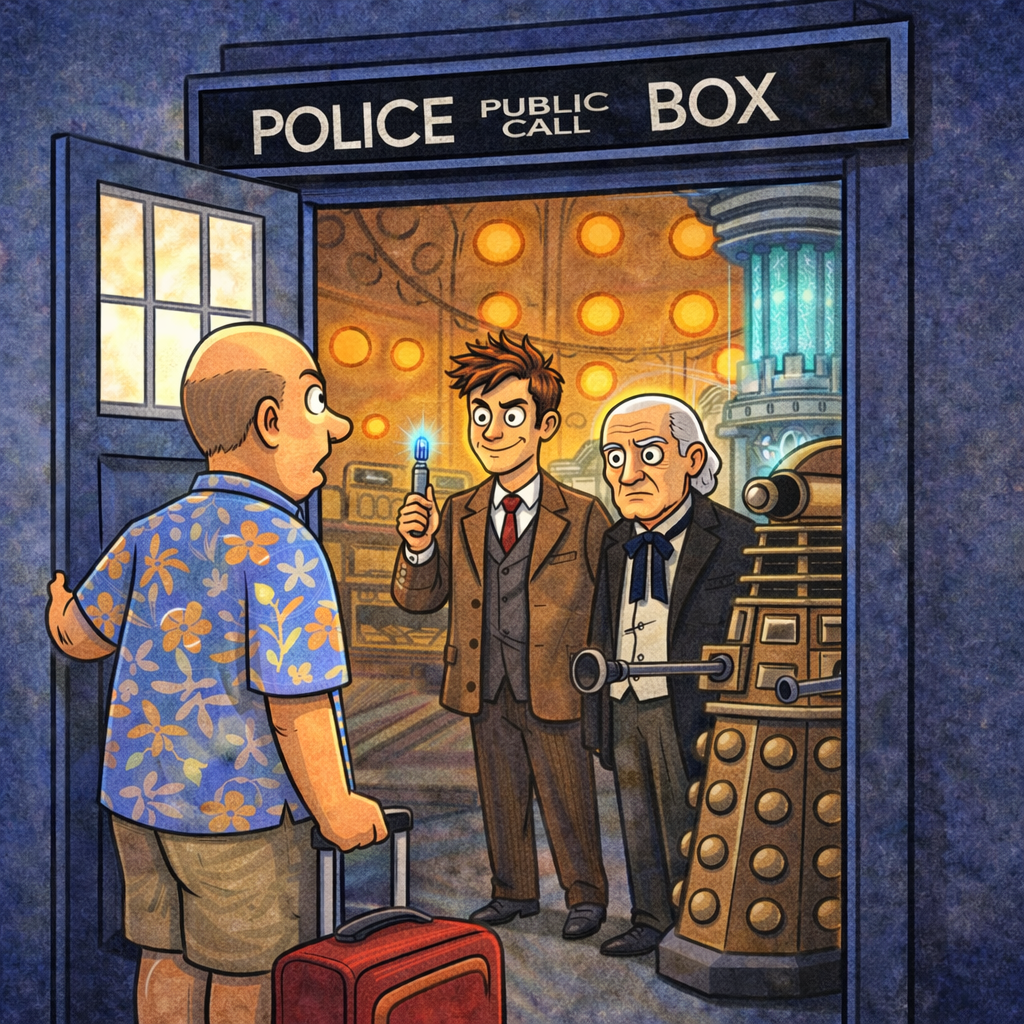 “Crikey, you really believe that potting shed of yours is The Tardis? You’re still in Australia, you twit.”